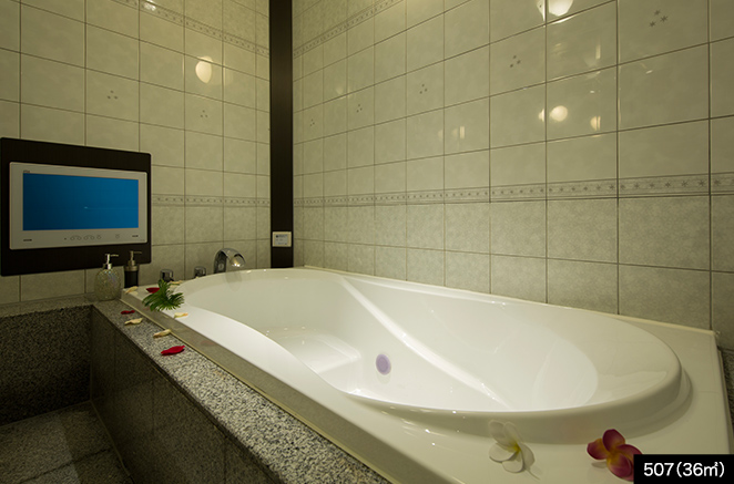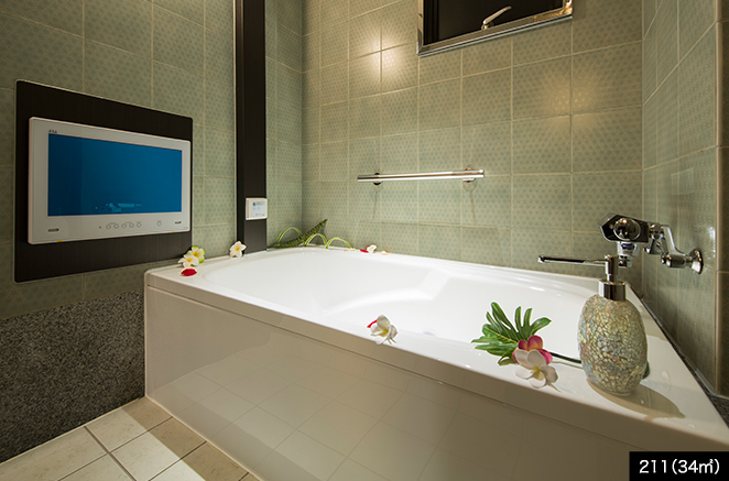 大画面で映画が楽しめる、液晶70型テレビ付きのお部屋です。 【広さ:31m²~35m²】